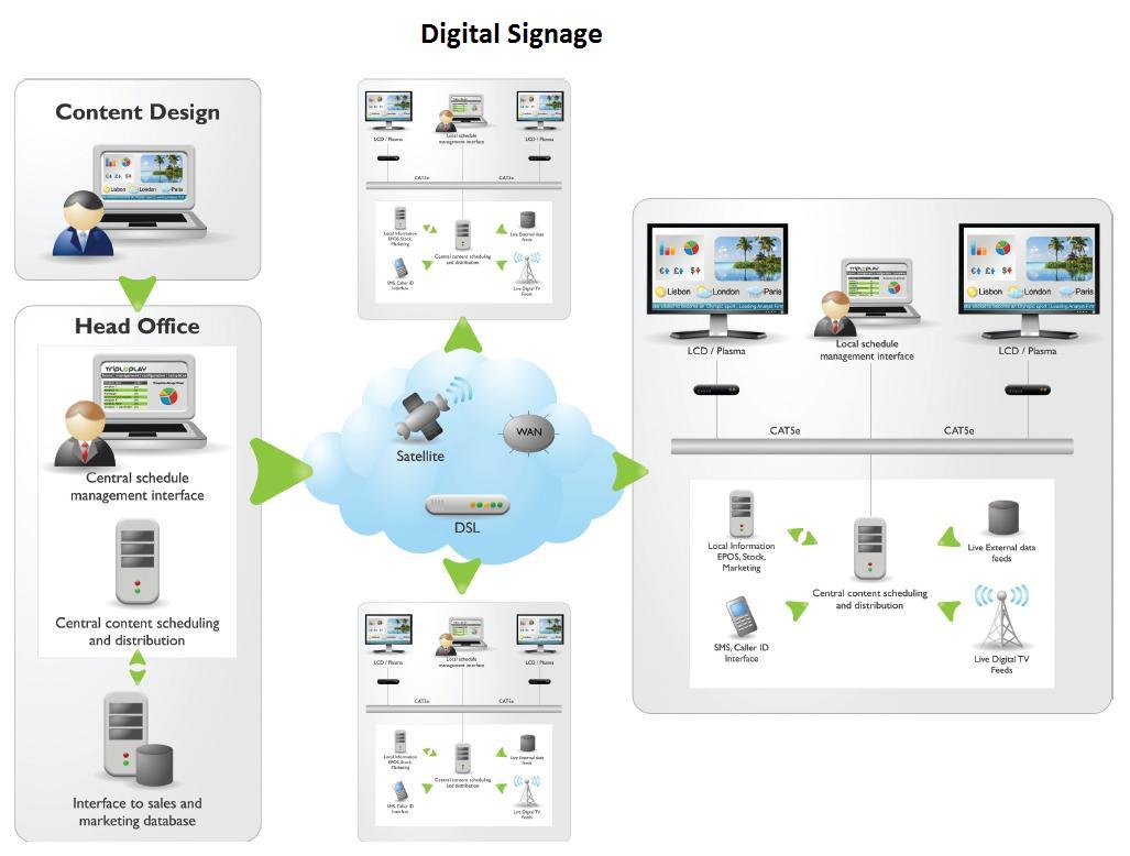 Using a centralised digital signage control server simplifies content management as any changes are administered in a single location without the need to distribute content to each of the individual end devices.