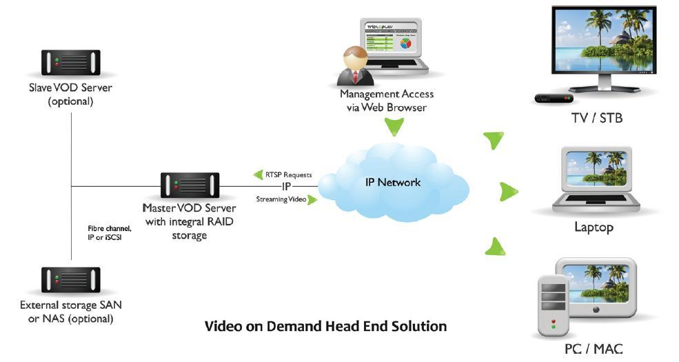 VoD provides support for on-demand streaming of MPEG-2 and MPEG-4 standard and high definition contents and an integrated content management system simplifies the management of information associated within the video content.